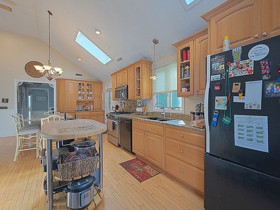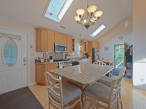 • Features: Skylight, Cathedral Ceiling(s), Flooring - Hardwood, Countertops - Stone/Granite/Solid, Countertops - Upgraded, Kitchen Island, Cabinets - Upgraded, Chair Rail, Exterior Access, Open Floorplan, Recessed Lighting, Remodeled, Stainless Steel Appliances, Wainscoting