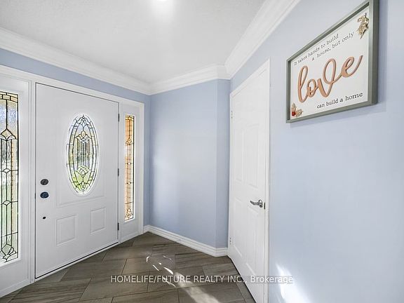 Beautiful Move-In-Ready Home In One Of Whitby's Most Sought-After Rolling Acres Neighborhood.This Home Offers Over 2,500 Sq Ft + Finished Basement With More Living Space. Step Through The Enclosed Front Porch & Into A Large Foyer, Where You'll Find A Convenient Access To Garage And Side Entrance Door. A Separate Living & Dining Room Offers Spaces For Entertaining Family And Friends. Fully Updated Kitchen With Adjoining Eat-In Area Opens Via Sliding Doors To A Private Fenced Backyard. Large Great Room With A Fireplace And Large Windows Overlooking The Backyard. Hardwood Stairs And Flooring On Main Floor, With Engineered Hardwood Flooring Throughout Upstairs And 4 Large Bedrooms, Including A Primary Bedroom With A 5-Piece Ensuite And A Walk-In Closet. Three Other Bedrooms Offer Lots Of Space For The Whole Family. The Finished Basement Provides An Extra Living Area, Recreation Space, Cold Room & Kids Play Area. Interlocking In Front And Back Yard With A New Driveway, & No Side Walk To Provide Up To 6 Car Parking. Located Minutes From, Hwy 401, Schools, Parks & Shops/Restaurants. Upgrades (Interlock Front/Back, New Driveway, Side Fences, Gutter, Windows, Exterior Doors, A/C)