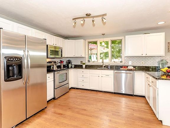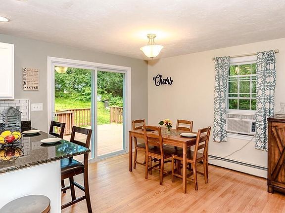 Quintessential New England Cape with charming details and open floor plan! Spacious, sun filled kitchen with white, wood cabinetry, stainless appliances and granite counters. Enjoy casual meals at the breakfast bar or larger gatherings in the dining area overlooking the rear yard. Both kitchen and dining open to the attractive family room with gleaming hardwood. Formal living room with a wood burning fireplace and detailed, custom wood mantle. Second level offers a spacious master bedroom with walk in closet and direct access to bathroom. Two nicely sized additional bedrooms both with large closets. Finished area continues in the lower level with a great gym/playroom space. Relax and enjoy the summer breezes on the large, rear deck. Half a mile to the commuter rail! New gas fired furnace (2015)! New water heater (2018). Town water & sewer! Offers, if any, to be reviewed on 7/31 @ 4pm.