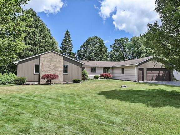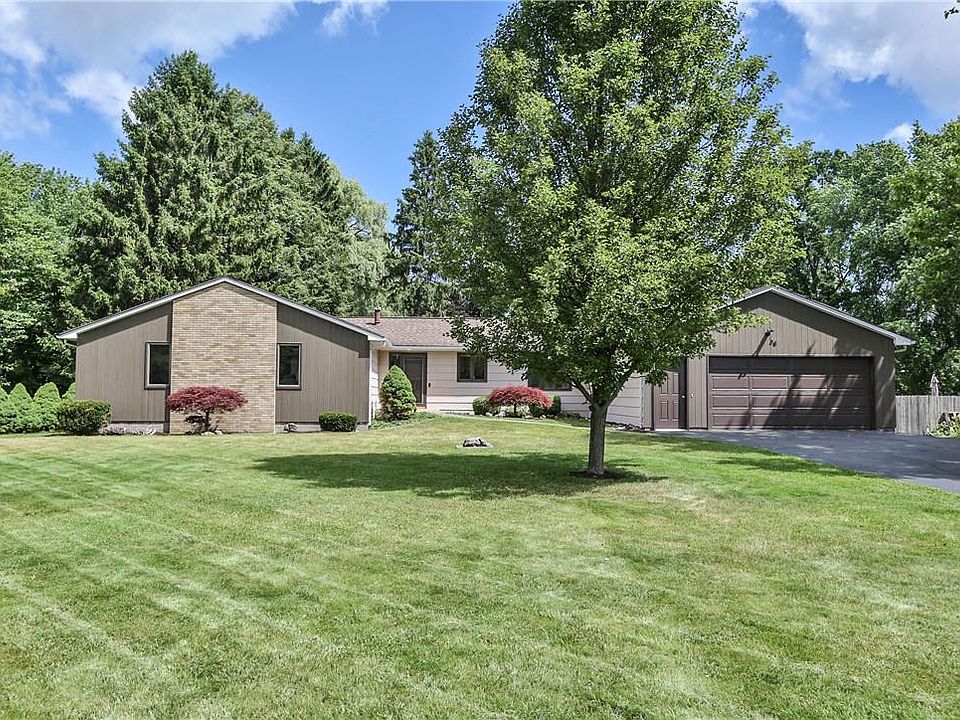 Beautiful custom built ranch home situated on beautiful .46 acres in the Webster School District! This one owner home has been meticulously maintained throughout. A truly zero step home from the front door thru the house and into the garage. This home has a wonderful floor plan with large eat-kitchen, open living room and dining room combination which is great for those large gatherings, 3 very large bedrooms, huge main bath with tub and separate walk-in shower, a large family room with vaulted ceiling and full wall brick fireplace. The family room opens up to a large deck overlooking the picturesque parklike yard with a creek running along the back. Enjoy entertaining on those summer days and nights out on the deck and have space for all the family. Oversized 2 car garage leaves room for storage. There is a cement ramp from the garage into the house for special access. This house was built with careful planning and the best of materials. The seller has the original plans. Pella windows, new carpet, freshly painted throughout, updated mechanics, 36" doorways, wide hallways. This house is waiting for your personal touch. Offers are due Wednesday 7/6 at 4:00