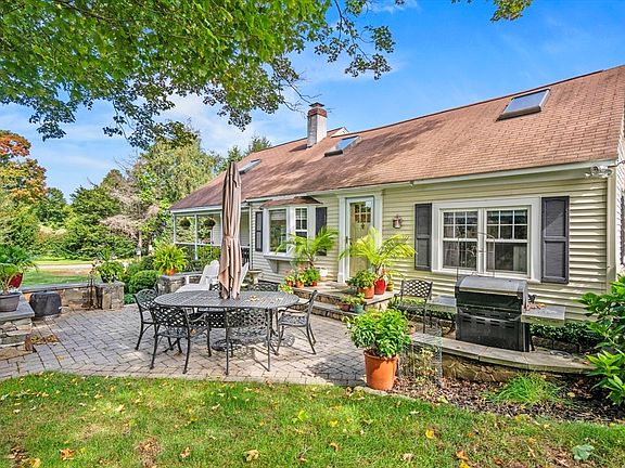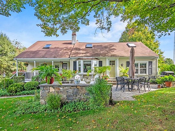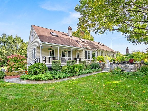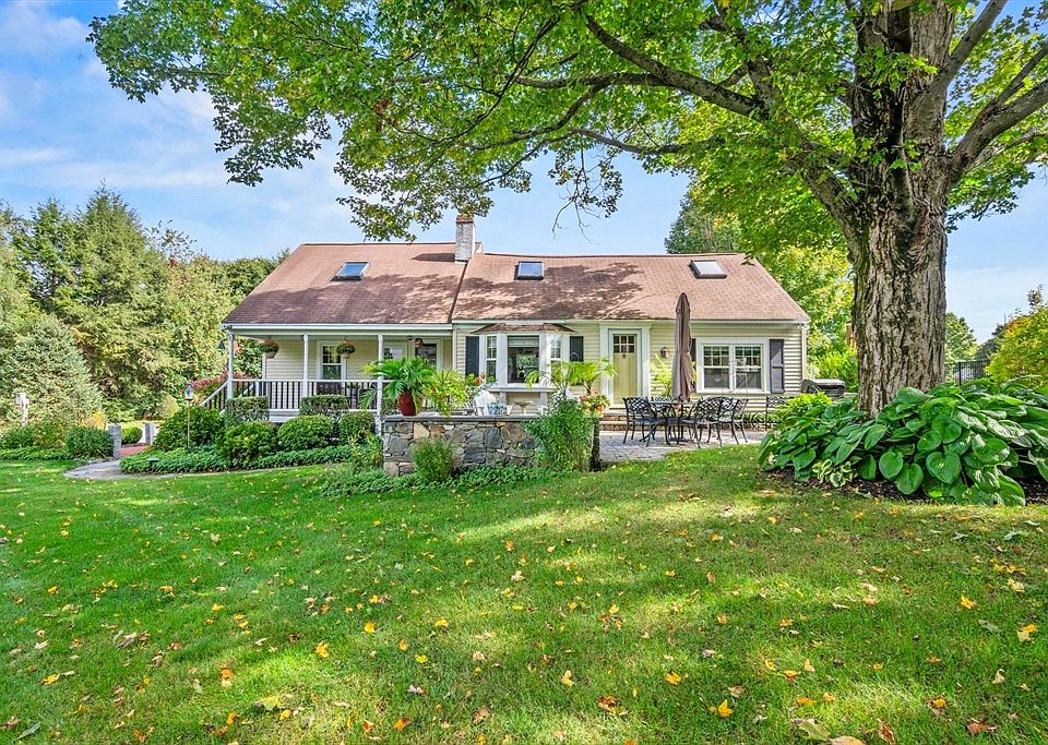 This hidden gem truly surprises upon arrival. Follow the drive as the property opens up to you: the house sits as pretty as a picture, framed by an expansive, beautifully manicured lot with mature trees. It offers total privacy yet is moments from downtown.A brick walkway leads to a paver patio and covered porch. Step inside to natural light and an open layout. The living room features hardwood floors, a vaulted ceiling with skylights, and flows into the kitchen with a breakfast bar and center island.The formal dining room, with its charming bow window, also has hardwood floors. French doors lead to a sitting room with a cozy wood stove insert. A full bath and laundry room complete the first floor.Two staircases access the second floor with three bedrooms (all with wood floors and skylights) and a second full bath. The partially finished basement adds bonus space with a pellet stove. Enjoy your private outdoor oasis for gardening and gatherings, plus a large storage shed. Welcome Home!