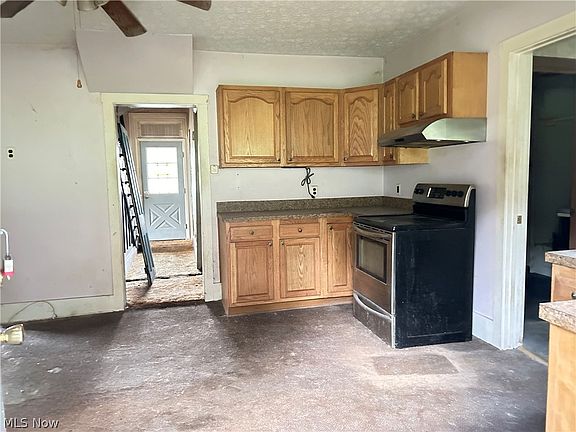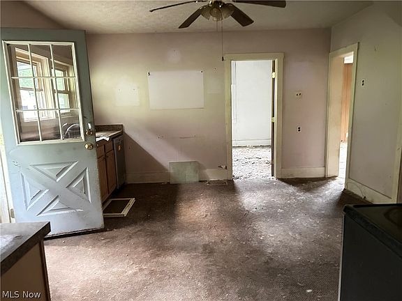 Vinyl sided 2 bedrooms, 1 bath home sitting on a double lot in the village of Irondale. Main level has living room, dining room, kitchen, office/den & full bathroom. Upstairs are the 2 bedrooms. Detached garage & chain link fence.