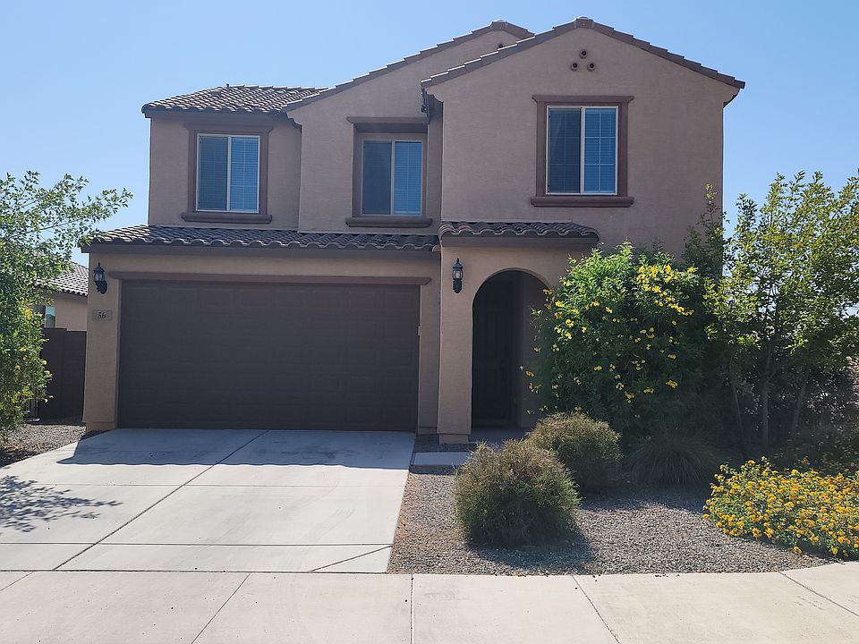 Bargain price offered for an 18 month lease! Introducing a modern and inviting 4-bedroom, 2.5-bathroom home located in the desirable Vista De Montana neighborhood of Buckeye, AZ. This corner lot property boasts custom paint and newer LVP flooring throughout, (bedrooms carpeted) creating a fresh and contemporary feel. The kitchen features stainless steel appliances and fresh white cabinetry, perfect for any home chef. Enjoy the convenience of a state of the art, All-In-One, washer and dryer. Step outside to the sizeable and inviting backyard with gorgeous turf included, ideal for outdoor entertaining or simply relaxing in the sunshine. Don't miss the opportunity to make this stylish and updated house your new home. $2000 security deposit, $400 cleaning deposit, 2% Buckeye rental tax, $400 pet fee IF the owner approves your one small dog. $20 monthly admin fee. Tenant must maintain tenant insurance during their tenancy.
