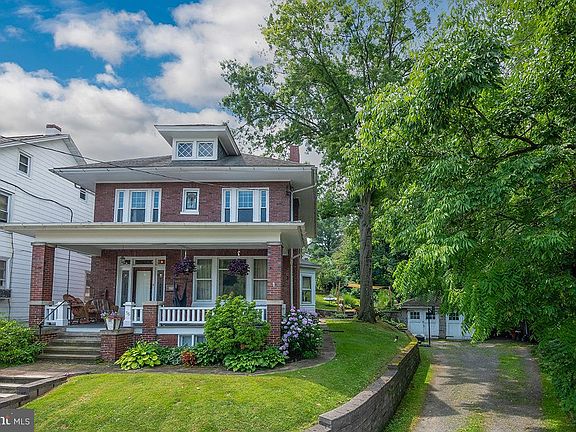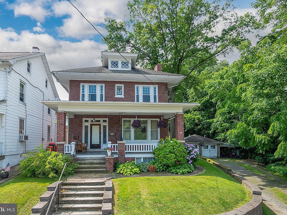 Affordable, large detached home, with almost half an acre, along the Wyomissing Creek in Mohnton. The large front porch is a wonderful place to relax and enjoy your morning coffee. As you enter the home, you will notice the large foyer with hardwood floors. The living large room has a gas fireplace and the dining room has a beautiful bow window. The kitchen offers lots of counter and cabinet space and all appliances remain. Upstairs you will find three nice-sized bedrooms and a full bath. The Primary bedroom offers a nice sitting room area with a large walk-in closet that features an organized shelving system! There is also a walk-up attic for easy storage. The partially finished basement has another half bath, a large family and a space that could be used as an office. Economic affordable living means lower monthly bills thanks to your gas hook-up for everything: Hot-water heater, kitchen range, dryer, fireplace, basement wall heater & furnace! The back yard offers multiple areas to lounge and enjoy the outdoors. Stay shaded with the remote control retractable awning on the cement patio or soak up the sunshine on the large brick patio with your own personal pond - you might even see a frog or two! The Wyomissing Creek flows softly in the back as well. The garden shed and garden are right behind the garage for your convenience. Two car detached garage and large drive allow for plenty of parking.