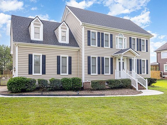 This classic home lies in a coveted Clayton neighborhood. On the first floor, you will find a formal dining room, white-on-white kitchen with tile backsplash AND island, breakfast nook surrounded by windows, powder room, and large living room with beautiful inlay detail on the hardwoods along with a fireplace and natural light. Walk right out to the outdoor space from the living room, which will amaze you — large deck, white verandas, HOT TUB, and a flat, private backyard perfect for play and hosting! Upstairs are FOUR bedrooms and two full baths, plus a walk-in attic boasting ample storage space. Roof was replaced in 2018. Located just off of Highway 42, US-70, I-40, and minutes from downtown Clayton. This home is perfect for making new memories. COME SEE TODAY!
