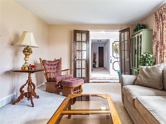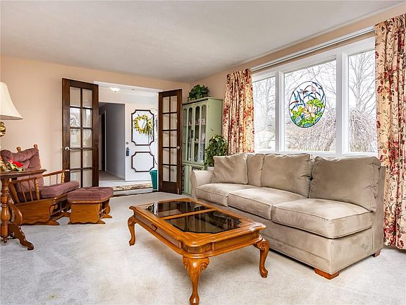 This Pristine 3 bdr/ 2.5 bath ranch in East Irondequoit is not only filled w/ charm, but is also wheelchair accessible! Wide doorways, ramp from garage accessing entry, to the no step shower in master. Large and open, with loads of light and space greeting you immediately upon entering. Tastefully decorated, this property has just had new carpeting & other flooring installed. The master offers double closets and wheelchair accessible facilities. Enjoy beautiful corner gas FP in the parlor with vaulted ceiling, slider access & view to the fully fenced, private back garden with patio and fire pit. This property will not disappoint!