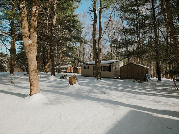 Looking for a seasonal camp? This property is perfect for that. There are 2 camps sitting on over 2 acres. Property used to have a mobile home on it that was attached to the first camp but was removed. The well and septic are available to reattach to the camps. The other camp (brown one) was started to be remodeled. Has new drywall and electric run but hasn't been finished. The first camp does have electric. Both places have had newer metal roofs installed and both have sheds. Property backs up to the Allegheny National Forest.