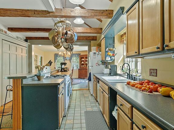 Beautiful charming Colonial located in the heart of Cornish "Cornish Flat" directly off route 120, short commute to Dartmouth or Valley Regional. Well cared for home by current owners who have enjoyed this home for 27 years. Gorgeous wide board floors with radiant floor heat which feels great on your feet. Open kitchen, living room, dining room which allows you to visit both areas from the kitchen. Fireplaces throughout this home. Glass slider opens from living room onto a lovely covered private porch. The warm weather will be here soon enough and you'll be able to sit out on the porch sipping your iced tea. If you enjoy gardening, this 2 acre parcel has the perfect spot, level and gets sunshine. Spacious rooms, 2 bedrooms upstairs and third bedroom on main floor with an unfinished bath just waiting for your finishing touches.