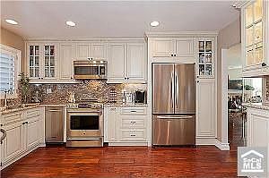 One year old kitchen + one year old bathrooms + one year old beautiful teak wood flooring! Come see this Bordeaux Granite counter kitchen with GE Cafe Series Range & Microwave; 3/4 inch teak wood flooring in lower level & stairs: gorgeous! Main Mst.bath with new granite counter. This JM Peters has 2 Masters plus 3rd Br.+ 3rd Bth. Patio with great, tall trees just out of Liv. Rm. Attachd 2 car gar. in well maintained Bayridge Comm. with towering trees; pools & spa. Close to Fashion Is. + OC Airport. 10 min. from CDM Beach! Ideal Location in Turn Key Condition.