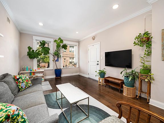 An open concept living space welcomes you into this lovely 3 bed, 2 bath with two garage parking spaces per unit and a beautiful shared yard in the heart of the vibrant Riverview Arts District in Jersey City Heights. The newly renovated gleaming white kitchen features quartz countertops with bar seating, a herringbone backsplash, and stainless steel appliances. The oversized primary bedroom boasts an en-suite and two closets complete with ELFA organization systems. Two additional bedrooms are perfect for offices, guest rooms, or nurseries. The garage features 2 tandem parking spaces per unit and can be used for additional storage. The lovely grass yard is home to a producing fig tree, hydrangeas, and a patio for entertaining. Other features include: hardwood floors throughout, a full laundry room with a folding table and ample storage, central air, Nest thermostat & smoke detectors, and a Level 2 EV car charger. Situated between Riverview and Manhattan Parks, you’ll have easy access to Palisade and Central Avenue bus routes and the 2nd Street Light Rail Station in Hoboken. Less than a block from Froth on Franklin, Alessio’s Cafe, and Green Pear Heights, come enjoy all the Heights has to offer. Welcome home!