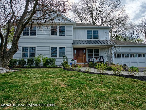 Lovely front porch & professional landscaping welcome you to this stunning home COMPLETELY rebuilt in 2021 from existing foundation! Bright& inviting open concept living, dining,& eat in kitchen. Gleaming floors, 10 ft island, alleanza quartz, custom cabinetry, stainless-steel appliances, & ample pantry space. On the 1st floor, you will also find a large family room w/ vaulted ceilings, 2 bedrooms (1 featuring en-suite), laundry room, 2 car garage access, & powder room. Upstairs, the primary bedroom will NOT disappoint- 2 walk-in closets & private bath! 4th bedroom also has full bath & WIC. 5th & 6th bedroom ''Jack & Jill'' with a full bath. Stackable washer & dryer on this floor for your convenience! Partially finished basement perfect for recreation, gym, office, etc! Enjoy the expansive private yard with paver patio! Close proximity to award winning schools, beaches, high speed ferry to Manhattan, & downtown Red Bank!