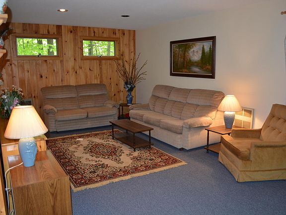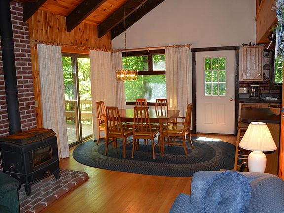 Expansive contemporary in Wildwood lake community.Open floor plan,oak &pine flooring,&attractive honey pine walls for easy maintenance.Expansive decking & screened-in porch for entertaining.1/3 mile from the beach on 74 acre Cranberry Pond,a non-motorized spring-fed &stocked pond.Tennis courts,walking trails,clubhouse & 4 beaches.Within 2.5 hrs to NYC or the Boston area.Furniture incl.,if desired.