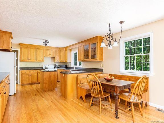 Charming and private Colonial set on 3.45 acres featuring large eat-in kitchen with island and breakfast nook, formal dining & living rooms all with newly refinished hardwood flooring, kitchen is open to bright and sunny family room with gas log fireplace, 1st floor powder room, stairs off the kitchen leading to bonus room above the garage, perfect for a 4th bedroom or recreation/playroom. 2nd floor features all 3 bedrooms, full guest bathroom, master bedroom with walk-in closet & master bath. Freshly painted throughout, central air, full unfinished basement, 2 car attached garage, shed for extra storage, deck overlooking private backyard & patio perfect for entertaining.