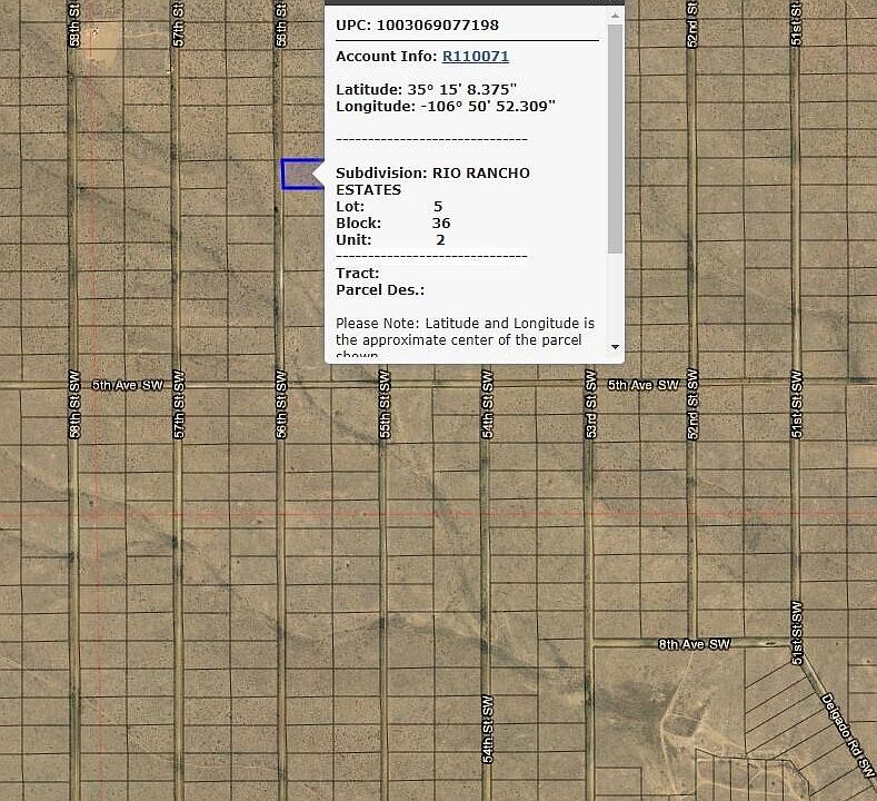 Great investment for the future or for the person looking to get away from it all. This property is in the far W of Rio Rancho Estates straight out Southern Blvd. Enjoy stunning Sunsets and Sunrises from your own personal property.