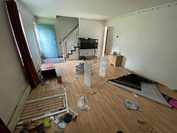ons of potential here! This 4 BR, 2 BA cape is located in a lovely neighborhood on the outskirts of town. Features include a paved drive, fenced in yard, full poured concrete foundation, and HWBB heating system. Excellent opportunity for investor or first-time buyer looking to establish some ''sweat-equity''. There's much in the way of cleanup needed (inside and out). Seller is offering home at a reduced price ''AS IS'' for quick sale. Buyer is responsible for all clearing of debris and/or any repairs that might be needed.