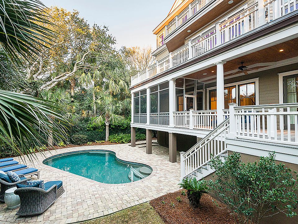 Beautifully designed and landscaped, this family-friendly home enjoys a desirable southern exposure. Majestic live oaks, palmetto trees, hedges, and discreet fencing surround the rear of the property with its in-ground saltwater pool and pool deck, framing an oasis of privacy.