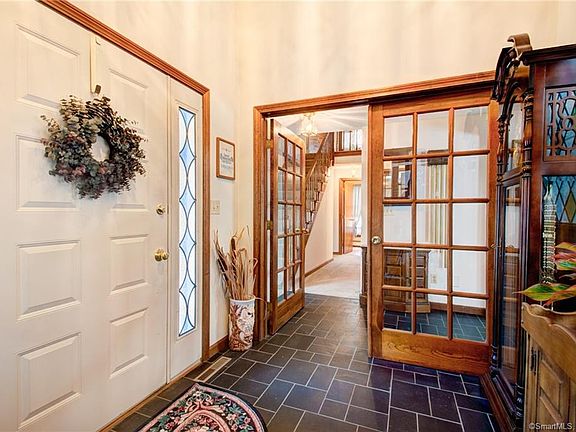 Set at the end of a fantastic Cul De Sac on over an acre that backs to town owned forest, you will be impressed as you drive up and see your opportunity to build equity into this large Custom Colonial. This one owner home offers space and flexibility to accommodate a variety of wants and needs. Inside the front door a mudroom with dual french doors greets you and as you enter into the kitchen, it opens through the eat in area and into the family room with soaring ceilings and skylights, a gas fireplace and separate doors to the garage and huge rear deck. The 1st floor also has a formal living room with gas fireplace, a formal dining room, and a huge "Sun room/family room" for a total of 3 separate living areas, plus a half bath with laundry. The upper level has a Master Suite with sitting room, vaulted ceilings/skylights, a Juliet balcony overlooking the back yard,plus another full en suite bedroom with it's own full bath. 2 additional bedrooms and a full bath bring it all together . The lower level features multiple walk outs to the rear, and 2 separate large finished and heated rooms that can be used as family room, game room, or flex space, a workshop room and storage room, multiple closets and plenty of light from the outside. The master suite upstairs, sun room on main floor, and game room in basement were part of an addition constructed in/approx 1996. Some updating and upcoming maintenance is likely desired and home is priced accordingly