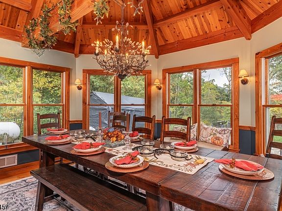 Vacation every day is this beautiful extended log home !! Open floor plan throughout, floor to ceiling stone fireplace in living room, hardwood floors, kitchen has vaulted ceilings, skylight,subzero, and all high end appliances, sliders out to deck and fenced yard, lots of parking with an upper and lower driveway, views of Greenwood Lake and more... part of Lakeside Community that is joinable with access to clubhouse and beach..Pictures say it all, shows awesome inside and out !!