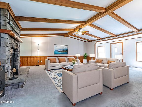 Charming Country Retreat with Convenient Access! This 3-bedroom, 2-bath manufactured home sits on its own 3-acre parcel along a quiet, town-maintained road. Step inside to a spacious open-concept living, dining, and kitchen area with soaring cathedral ceilings, exposed wood beams, and a cozy stone-hearth fireplace. The primary suite offers a private bath, while two additional bedrooms, a full guest bath, and a mudroom/laundry room provide plenty of comfort and functionality. Outside, enjoy a large 2-car carport plus two storage sheds for all your tools and toys. All just minutes from I-93, Tilton, Bristol, Plymouth, Lake Winnisquam, and Lake Winnipesaukee—perfectly situated to enjoy the best of the Lakes Region. Come and see for yourself at one of our OPEN HOUSES this weekend. Sat 8/30 and Sun 8/31 both from 12-2:00. See you there!