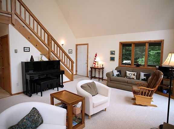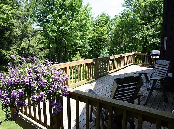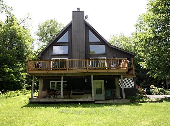 Perfect, pristine, private custom chalet with loft on 6+ acres. 2 BR/2baths, with plenty of spots for extra bedrooms. Spacious living room with soaring cathedral ceiling opens on both sides to large deck for outdoor entertaining or relaxing. Lovely stone hearth fireplace w/heatlilator throws plenty of heat. Open floor plan. Polished bluestone counters in bright, cheery kitchen. Loft upstairs for sleeping or an office, plus a huge bedroom upstairs w/full bath. The partially-finished basement offers a family room, shop, office or studio space. BONUS: this lovely home comes fully furnished! Huge closets-- so much storage space in this home! Outside, find a patio with firepit, covered porch with outdoor furniture, the large deck, a storage shed for gardening. A charming gazebo is just a short walk from the house. 6 acres to explore. Just 5 minutes to Roscoe (akaTrout Town, USA) for world-class fishing on the Beaverkill River, shopping, restaurants, Rt 17.