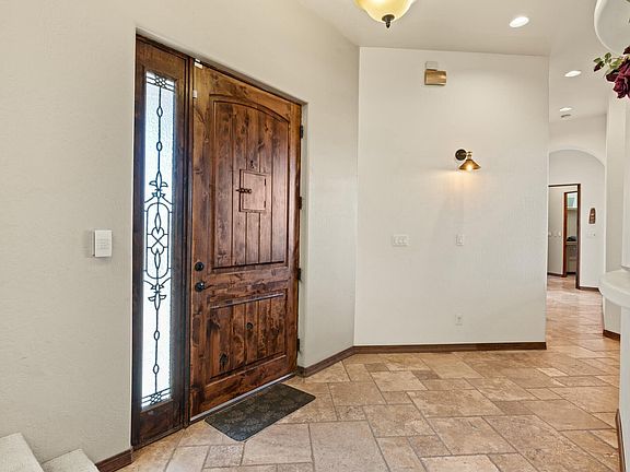This impressive property is close to the city but offers a peaceful retreat. It features beautiful travertine stone flooring & a gourmet kitchen w/ custom cabinets, a large island w/ a second sink, and a SS cooktop w/ a pot filler. The butler's pantry adds luxury and space. The inviting living room has a gas log fireplace. Flex space can be a theater room or home gym. The main level includes a sunken dining room and 3 bedrooms plus an office. Upstairs, the primary BR has a sizable en-suite bathroom with a soaking tub and dual walk-in shower, 2 dressing rooms and 2 walk-in closets. Outside, enjoy trails along the Bosque and a large covered patio for dining or lounging. The property has an 8 car garage with a 1/2 bath. Efficient geothermal heating & cooling system for year round comfort.