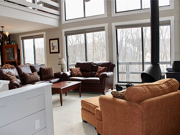 Spend ski season in this 3 bedroom Hidden Valley townhome. Valleview townhomes offer a convenient location and picturesque views of the ski slopes. Brand new carpet throughout! Ceramic tile entry welcomes you to the lower level with 3 bedrooms and a full bathroom. Spacious hall storage area for all your ski boots and a hall utility closet to hold your skis. The second floor is filled with light from the floor to ceiling sliding doors and windows. Open floor plan allows for easy entertaining. The fully equipped, efficient kitchen has a breakfast bar for additional seating. Wood burning fireplace highlights the living area and provides warmth for the winter evenings. Pull down stairs access the loft area which is perfect for a kids gaming spot or an additional sleeping area. Nice touches throughout include crown molding, 6 panel doors, and dimmer light switches. Hidden Valley is the perfect year round getaway with skiing, golfing, swimming pools, tennis courts and more.