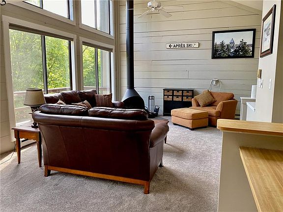 Spend ski season in this 3 bedroom Hidden Valley townhome. Valleview townhomes offer a convenient location and picturesque views of the ski slopes. Brand new carpet throughout! Ceramic tile entry welcomes you to the lower level with 3 bedrooms and a full bathroom. Spacious hall storage area for all your ski boots and a hall utility closet to hold your skis. The second floor is filled with light from the floor to ceiling sliding doors and windows. Open floor plan allows for easy entertaining. The fully equipped, efficient kitchen has a breakfast bar for additional seating. Wood burning fireplace highlights the living area and provides warmth for the winter evenings. Pull down stairs access the loft area which is perfect for a kids gaming spot or an additional sleeping area. Nice touches throughout include crown molding, 6 panel doors, and dimmer light switches. Hidden Valley is the perfect year round getaway with skiing, golfing, swimming pools, tennis courts and more.