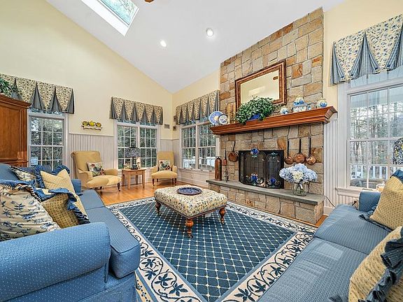 You are home! A nature lovers' oasis.This custom masterpiece is on a cul-de-sac in coveted Whiting Village.Intricate & exquisite details comprise the open floor plan. A truly inviting & relaxing retreat for you to enjoy with family & friends.Natural light bathes this home from large windows that provide picture perfect views of the resort-like back yard, swimming pool & conservation land. A brook provides soothing sounds. The huge outdoor covered deck (a rare feature) off the kitchen provides an awesome & nearly maintenance-free outdoor living space. The large kitchen opens to a cathedral ceiling great room w/ a stone FP & informal dining area. A dining room & parlor next to the kitchen are perfect for formal events.The MS has sky-high ceilings, FP, and a walk-in closet. The 2nd flr also has 3 more bedrooms & 2 full baths, along w/the laundry.The walk-out finished basement w/FP & full bath is perfect for an in-law/au-pair suite. Vir Tour & 3D MATTERPORT TOUR ATTACHED for pre-viewing.