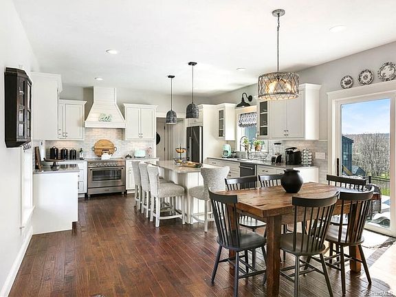 Sitting at the top of West View Dr, this 3 year old Custom home is better than new. Established plantings, large paved driveway, and fenced back yard. Enjoy the west views from the open kitchen/dining area, or right out to the deck. Cozy up to the gas fireplace in the living room while waiting for the sun to rise over the farmers porch. High ceilings, wood floors and large windows throughout most of the house. The primary bedroom is on the main floor, with a full bath that includes double vanity and a tile shower, and a private deck. The upper level has 2 more bedrooms, and smaller room with a built in bed that could be a guest room, or office. There is room for expansion with a walk in attic, currently used for storage. The lower level is bright, and partially finished as a rec room. It is also pre-plumbed for a full bath. The garage/barn is large enough for cars, boats, lawn equipment, has a 2nd level, and a workshop addition. This location is private, yet close to many local amenities. Call for occupancy details.