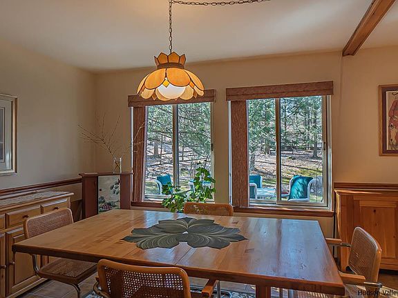 Here's a recipe for contented living in the Hudson Valley. Start with a peaceful and secluded setting in the woods convenient to Red Hook and Rhinebeck. Add an upgraded and expanded '80s contemporary home that features a generous amount of living space in large, light-filled rooms. Garnish with meticulous maintenance and lovely plantings, and top it off with your own running brook and a community pond. Nicely spaced evergreens mask the driveway and house from the road but open up to allow plenty of sun to the house and yard. The open foyer; which features sunlight from both levels, stylish chandelier, and open staircase; sets the tone for the rest of the house. All of the rooms save one offer views of the yard; and there are three entries to the back yard, which is fenced and surrounded by woods. There's plenty of space here to adapt to various uses - rooms currently used for office, library, living, dining, and breakfast can all be put to other uses as required. There's plenty of storage here, as well - the heated garage and the attic are both insulated; the mechanicals coexist with the clothes washer & dryer in the 1st-floor laundry where there is also extra space. The entire house is effectively insulated with combined electric and propane heat sources to permit maximum control and efficiency. And for atmosphere, there's a toasty Vermont Castings WinterWarm Fireplace System in the living room!