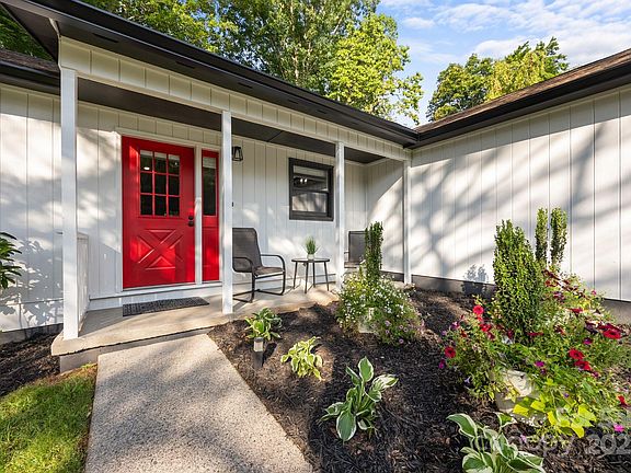 Immaculate East Asheville gem! Smart one level home with tons of updates flows beautifully. Great room with vaulted ceilings and cozy fireplace opens to bright and sunny eat-in kitchen with pantry, modern cabinets, butcher block counters, tile backsplash and stainless appliances. Primary bedroom suite with private bath and walk-in closet. Two additional guest bedrooms and full bath. and split bedroom floor plan. Enjoy the peaceful and private surroundings from the back deck overlooking a level yard for pets and play. Or enjoy your morning coffee on the covered front porch. Minutes to schools, shopping, dining and more and less than 10 minutes to Downtown Asheville - yet tucked into a great, established East Asheville neighborhood.