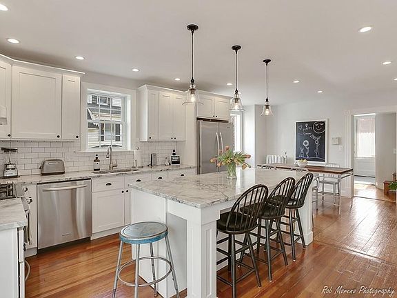 Welcome home to this pristine 4 bedroom colonial located in the desirable Olmsted District. As the recipient of The Historical Commission's Preservation Award in 2015, this home seamlessly blends modern day design with the quality and craftsmanship of years gone by. The 1st floor offers a 24' kitchen featuring stainless steel appliances, granite countertops, hdwd floors, large kitchen island, additional dining area, pantry & French doors leading to the rear yard. Formal dining room is perfect for entertaining with hdwd floors, custom built-ins, decorative fireplace & chic overhead lighting. 2nd floor offers 4 generous bedrooms, hdwd floors, modern tiled bath, high ceilings & access to a massive walk up-attic. This wonderful space could easily be finished for additional living area! Home also offers newer fenced yard, gas heat, restored clapboard exterior, 1 car garage, additional off street parking, screened in sun porch & is within walking distance to T. Absolutely move-in ready!
