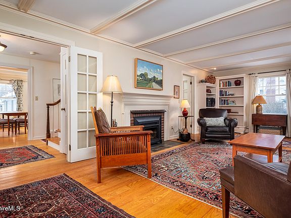 This charming 4 bedroom, 2.5 bath Colonial with a two-car attached garage is situated on a half-acre of land in one of Williamstown's most desirable neighborhoods and offers the opportunity to live centrally to all in-town amenities. Having undergone recent updates and renovations, this home also features oak flooring, crown moldings, French doors, beamed ceilings, and built-in bookshelves. Expanded and renovated kitchen with Granite countertops, living room with decorative fireplace with energy efficient insert, and breezeway/mudroom with ceramic tile floor and radiant heat. The serene setting is enhanced by a bluestone patio, Ashfield stone wall, gardens, and partially fenced yard. Fabulous center-of-town location! This charming four-bedroom and three-baths Colonial with a two-car attached garage and situated on a half-acre of land in one of Williamstown's desirable neighborhoods offers a wonderful opportunity to live centrally to all of Williamstown's amenities while providing privacy in a serene like-setting which is further enhanced by the beautifully landscaped bluestone patio, Ashfield stone wall, gardens, and partially fenced yard. Having undergone recent updates and renovations, this house also offers special extras such as the architectural details i.e., oak flooring, crown moldings, French doors, beamed ceilings, built-in bookshelves, and the expanded and renovated kitchen. Accented also by a decorative, dentilated fireplace with an energy efficient insert, and a splendid, updated breezeway/mudroom with its ceramic floor tile and radiant floor heat, this house provides all of the comforts of home, aesthetics, and fabulous center-of-town location.