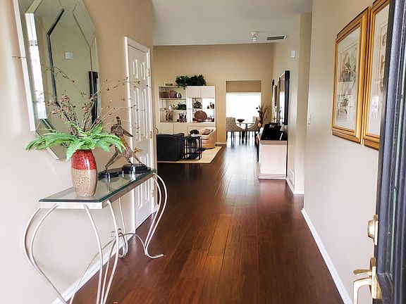 Unique Open Floor plan! Popular Danbury - wide-plank distressed HW floors thru-out. Light & Bright kitchen w/ center-island, granite countertops & SS Appliances, DR is OPEN to Great Room w skylights & cathedral ceiling leading into FR w/ sliders to brick paver patio & oversized property. Immaculate moldings and wood floors make this home a "10!" Sumptuous Master BR w/ step-in closet, vaulted ceiling, ceiling fan & luxury bath w/ tub & shower. Guest BR/Study has new wall-to-wall carpet & located right outside neutral full guest bath. Laundry room w/ Washer/Dryer included, oversized garage. The Danbury is a highly sought after model in Greenbriar and this home has natural sunlight and warmth. Greenbriar boasts a PGA rated golf course, racquet sports, 24-hour nurse, social clubs, indoor/outdoor pools, fully equipped gym and bus transportation. Don't miss this home!
