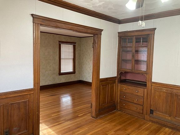 Modern amenities and your personal 'style' will make this a home you will love as much as the current owner has for over 50 years!! Some of the 'heavy lifting' has been done: The roof was replaced in 2013 and siding is just a year old. The bathroom was redone in 2018, New front steps in 2015, garage door opener, 2016. The gas hotwater heater was replaced this year. Entering through the enclosed front porch is a lovely entry foyer leading to the living room and dining room with woodwork and detail that are characteristic of houses of this age including a built-in china cabinet in the dining room and a fireplace that was originally gas (disconnected) in the living room. The kitchen will accommodate many cabinets and countertop surfaces and leads to the private back yard. Four bedrooms and a newer bath are off the central hallway with its built in linen closet on the second floor. 2 of the bedrooms have bay windows. Walk up attic is accessed via a staircase from a bedroom.