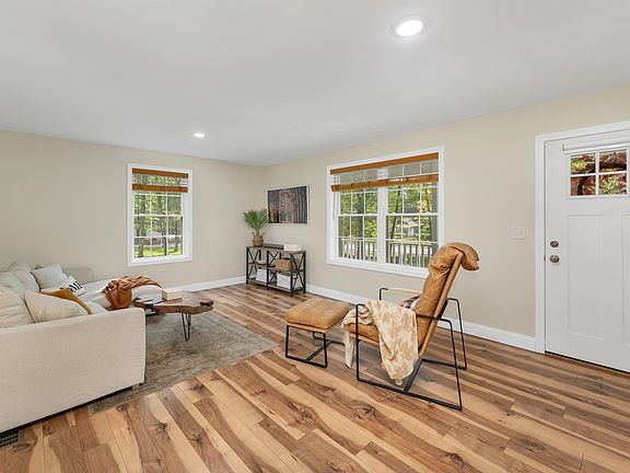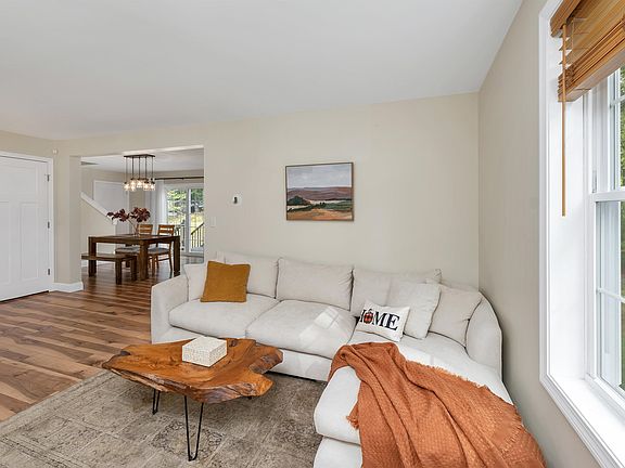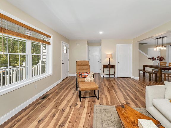 Look no further! This like-new, 3-bed, 2.5-bath Cape is set back on a private 2-acre lot. From its curb appeal to its inviting open concept interior, this property offers a perfect blend of comfort and convenience. Enter through the charming covered front porch into the main living area where you'll appreciate the warm ambiance and natural light that fills the space. The living room flows seamlessly into the dining room where you can host family dinners and entertain guests. Adjacent to the dining area is the kitchen, equipped with modern white cabinets and stainless steel appliances. The dining room slider opens to the back deck and an expansive backyard that's perfect for outdoor activities, relaxation, and gatherings. A half bathroom and a sun-filled office complete the first floor. Upstairs, you'll find a spacious primary bedroom with two large closets and an en-suite bathroom. Two more bedrooms upstairs share a full bathroom, which conveniently includes the washer and dryer. A bonus room above the garage already has rough electrical/HVAC and framing and is ready for you to finish for an additional 275 feet of versatile living space. There is also a full unfinished basement if you need more room. This property features an attached two-car garage, natural gas heating and the potential for central air cooling with an added condenser. This home is ideally located with schools, parks and trails, and shopping centers all nearby.