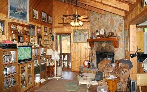 Come hear the noise of the rushing creek! This is one of those "you can't do that anymore" cabins. Practically hanging over Wilscot Creek with appr 193 ft creek frontage. 3/2 cabin with wood burning fireplace all one level living. NO STAIRS! Mostly all wood interior with vaulted ceiling with skylights. Separate dining, sun room, split floor plan with private master. Great outbuildings complete with electric and one with functional workshop. Plenty of gardening area, etc. Land surrounding cabin very level and additional wooded building lot(s) above the cabin for family, friends or profit. Can hear the creek even from the top of the property and have some mountain view. 09/01/13