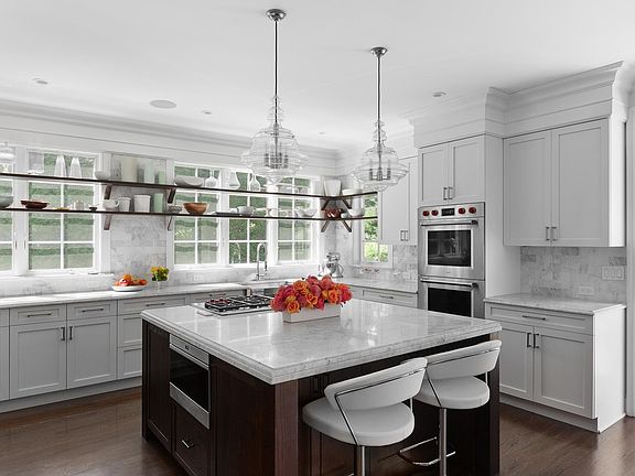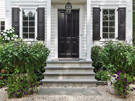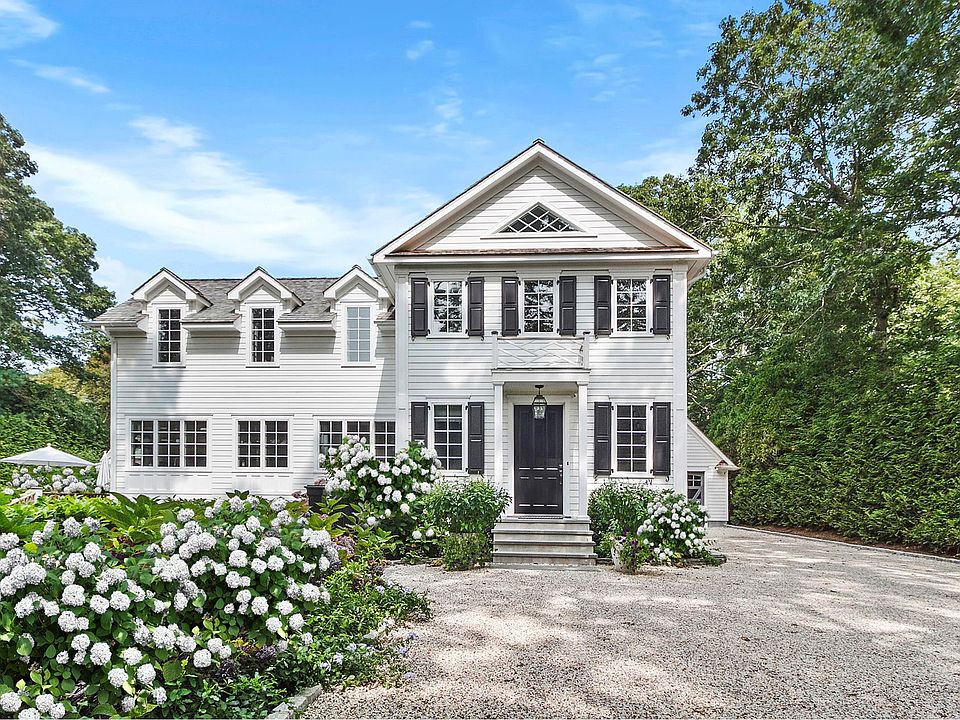 Stately gates swing open from a quiet village lane to introduce this lovely estate-like property. The recently constructed home, separate garage and pool house sit within lawns terraced by stacked stone walls and stairways leading to the gunite pool and patios. The house has a Greek Revival facade and three living levels, accessible by stairway or elevator. The front door opens into a 2 story foyer leading through a gallery into the living and dining areas. The crisp bright kitchen beyond is framed in windows and has a professional Wolf range, double ovens, glass Subzero refrigerator and two Bosch dishwashers. It flows into an open-plan great room, living room with wood-burning fireplace, and library (or flexible sixth bedroom suite). Walls of French doors provide ample southern sunlight and open access to the pool area and lower playing field. The second level has four bedroom suites, including a gracious master bedroom with gas fireplace and balcony walkout. The lower level includes an entertaining and media area opening to a sunny patio, as well as another large guest suite. The barn-style garage fits two large vehicles, while the pool house has a half bath and outdoor shower. The home offers serenity and seclusion, yet is just five minutes from ocean beaches, village shops and restaurants.
