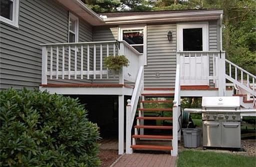 For more information on this property, contact William Raveis Real Estate, Mortgage & Insurance at 1-888-699-8876 or contact@raveis.com. MOVE RIGHT IN TO THIS IMPECCABLE, WELL MAINTAINED HOME ON A PRIVATE 1. 7 ACRE LOT. MANY UPDATES INCLUDE VINYL WINDOWS WITH TWO VINYL BOW WINDOWS, NEW SIDING, CENTRAL AIR AND UPDATED HOT AIR OIL HEAT. 3 ZONE HEAT, TWO FIREPLACES, LARGE OPEN KIT. WITH BEAUTIFUL FAMILY ROOM, EXPANSIVE TWO LEVEL DECK, SCREENED SUN ROOM WITH HOT TUB, SECURITY SYS., WET BAR, FIN. LOWER LEVEL, 2 FULL BATHS, HARDWOOD FLRS AND MUCH MORE. HOME HAS MANY TEXTURES, STONE FIREPLACE, WOOD CEILING & MUCH MORE. A MUST SEE!
