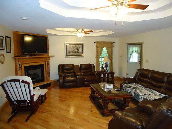 Very well-kept 3 bedroom, 2 bath home situated on a double lot in Young's Creek Estates between Corbin and Williamsburg. Home offers beautiful hardwood and tile in living room, baths, and kitchen. Large living room with gas log fireplace, spacious kitchen with appliances and dining area. Metal roof, 2 car attached garage, covered front porch and large covered rear porch. 1.38 acre Level/rolling lot with additional 16 x 24 building that has electric.