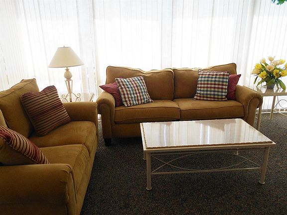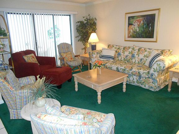 Quite and private downstairs location close to pool and practice putting green. Excellent condition. Large golf cart storage area. decorated in perky cottage colors to fit right in with all the fun you will have in this unit Has winter renter for income in the off season about can be moved if you want to use it before summer starts.