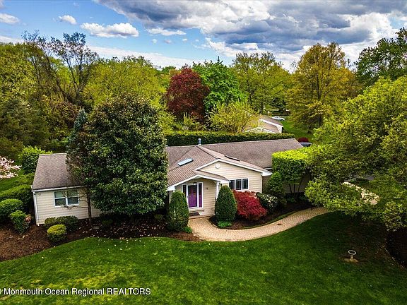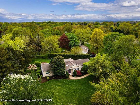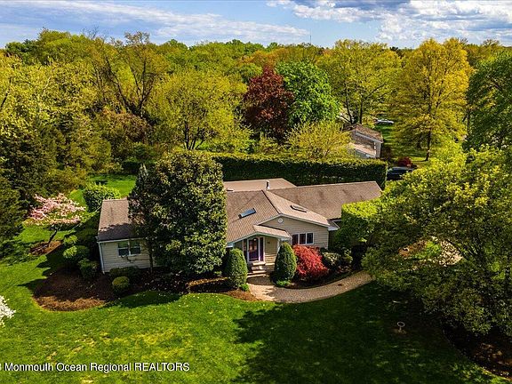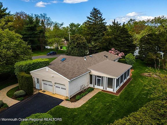 Must see this move-in ready 3BR & 2 full bath beautiful ranch on 1/2 an acre/corner lot in a sought-after neighborhood in Northern Tinton Falls. Enter into a lrg, bright, open foyer w/ vaulted ceiling, skylight & immediately feel at home. The EIK has a large center island & shares a two-sided gas fireplace w/ the LR which also has a skylight & vaulted ceiling. The DR has a wall of windows w/a French door leading to an enclosed screened-in porch overlooking a private yard w/a paver patio tucked away also. The Primary BR has newly refinished HW floors, walk-n cedar closet & an updated full bath w/skylight. The 2 car garage has a separate work area. Home also offers a sprinkler system; security system; new driveway (4/2023) HW floors, updated baths (more.) Full partially finished heated basement; most interior rooms have been freshly painted (April 2023.) Flat roof over the porch & the roof in the back of the house are approximately two years old. This gem is conveniently located near GSP, Rt18, shopping, restaurants, and beaches. Make an appointment today to see this home.