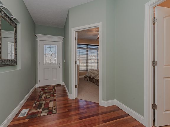 Beautiful open floor plan, 2 Bedrooms and 2 full baths on main. Vaulted ceilings, Wood floors, upgraded fixtures and stone surround gas fireplace. Outstanding Kitchen with stainless appliances, double oven, Granite countertops, eating bar, walk in pantry, desk area. Master suite with trey ceiling, tiled surround shower and dual vanities. Family Room down, Bedroom and full bath with tile surround. Home has surround sound in many rooms including basement. Equipment remains along with Washer Dryer and all appliances.
