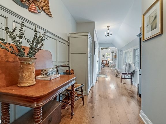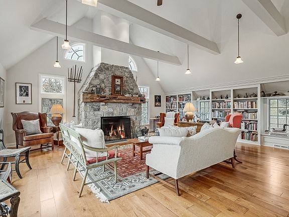 Welcome to 56 Zellers Rd in the desirable Schooley's Mountain section of Long Valley. A custom Colonial offering timeless style, southern exposure, and modern comfort on nearly 8 acres of open countryside. Built in 1982 and completely renovated in 2006, this exceptional home features 4 bedrooms, 3.5 bathrooms, and beautiful hardwood floors throughout. The 1st floor primary suite offers convenience and privacy with custom built-in cabinetry and a well-appointed full bath. The spacious eat-in kitchen is the heart of the home, showcasing custom cabinetry with granite countertops, a Viking range, an additional oven, a farmhouse sink, and a charming gas burning stove. The open layout flows into a den or sitting room and an inviting dining room with a wood-burning fireplace. A second fireplace warms the living room, creating a cozy atmosphere. Upstairs are three bedrooms and a full bath, plus a full walk-up to the third-floor loft offering space for play, leisure, or storage. The walk-out lower level includes a family room, full bath with Kohler walk-in tub, laundry, and utility rooms with two new well tanks. A new double Geothermal heating and AC system provides year-round comfort and efficiency. Step outside to multi-level Trex decking with an automatic awning, or enjoy the patio and in-ground pool surrounded by sweeping valley views. The detached oversized two-car garage includes a second-floor loft for a studio, gym, or storage, and features driveway grates for runoff control.