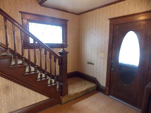 Solid 4 bedroom, 2 Bath traditional 2 1/2 story. Solid wood pocket doors close off the living room while beautiful French Door with dormer window lead to the front porch. Personal property included: Refrigerator, stove, sump pumps & window coverings.