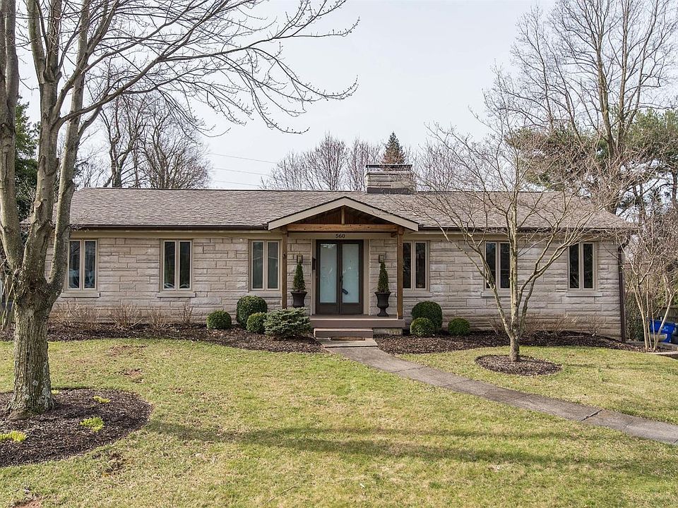 Outstanding 3BR/2BA Bedford Stone Ranch w/numerous updates & amenities. Beautiful hardwood floors, wonderful floor plan includes welcoming entry foyer, large formal dining room, renovated Kitchen w/stainless appliances (gas cooktop range), family room w/wood burning fireplace, generous sized bedrooms & 2 wonderfully renovated bathrooms. The lower level offers cozy den, rec room w/wet bar & abundant storage room. Newer insulated casement windows, covered front porch, nicely landscaped grounds, 2 car rear entry garage & fenced yard. Don't miss this incredible home in a desirable location!