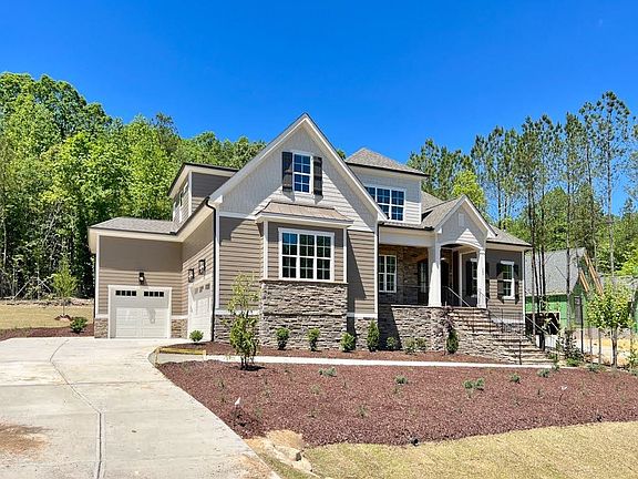 Welcome to luxury living in the highly sought-after Briar Chapel community! This custom-built masterpiece, nestled in the Estate section, offers unparalleled craftsmanship and sophistication. Built by the renowned Homes by Dickerson, this pristine home is brand new and has never been lived in. Back on the market through no fault of the seller, this is your chance to own a piece of Briar Chapel's finest. Step inside to discover a seamless open floor plan adorned with beautiful hardwood floors throughout the first level, stairs, and landing on the second floor. The gourmet kitchen is a chef's delight, featuring a breakfast bar, stainless steel Viking appliances including a fridge, induction cooktop, thermal convection oven, and drop door convection microwave oven. Completing the kitchen is a Bosch dishwasher and a convenient Butler's pantry with a floating shelf. Unwind in the cozy family room, complete with a gas fireplace surrounded by elegant stone, bookshelves, and cabinets with stained tops. The owner's suite boasts a luxurious bath with a dressing table, double vanity, and a custom walk-in closet. A first-floor bedroom suite offers added convenience. Experience ultimate organization with custom lockers and a laundry room featuring soft-close cabinets and a sink. Upstairs, two additional bedrooms, two full baths, and a spacious rec/bonus/office room with a custom walk-in closet provide ample space for relaxation and productivity. Storage will never be an issue with plenty of walk-in storage areas. Step outside to the covered porch, where a stone fireplace, wood boxes, and flagstone create the perfect ambiance for outdoor gatherings. Enjoy the stone patio, ideal for al fresco dining or simply soaking in the tranquil surroundings. This home is loaded with upgrades and features a Green Certification and a conditioned sealed crawlspace for energy efficiency and comfort. The three-car garage boasts an epoxy floor, and the professionally landscaped yard includes an irrigation system for easy maintenance. Don't miss the opportunity to make this luxurious Briar Chapel residence your own - schedule a showing today and experience the epitome of upscale living! Seller is motivated, bring all offers
