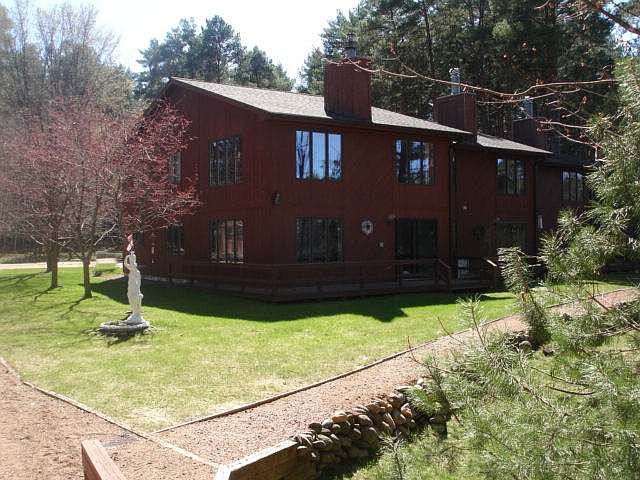 YELLOW BIRCH PINE COVE CONDO - This is the most picturesque condo property on the Eagle River Chain of Lakes. There are only 3 units to this property and they sit on over 250 feet of frontage on Yellow Birch Lake. This end unit is 2100 sq. feet with 2 bedrooms and 2 full baths. The unit has a wonderful open concept with a wood burning stove and a built in hot tub plus a nice outside deck lakeside to sit and solve world problems. Living, dining and kitchen plus a full bath and laundry room are located on the main level. The second level includes the 2 large bedrooms, another full bath and office space overlooking soaring windows to the lake. This unit comes completely furnished and also has a boat slip. This one is priced to move and move into.