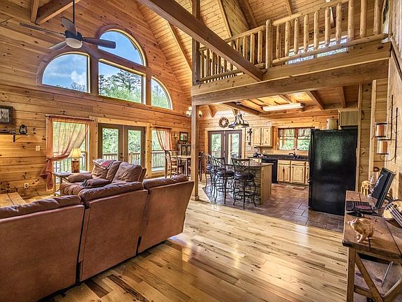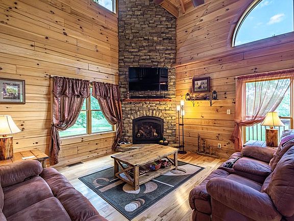 FURNISHED CREEKFRONT TRUE LOG home located in Turkey Creek! A wooden bridge crosses over the creek with seating to stop, relax & enjoy the sound of the rippling water. Inside your Great Room you'll find a stacked stone floor-to-ceiling fireplace. All wood interior lends to the rustic mountain style. Your kitchen with tile floor, granite, black appliances compliments the wood tone cabinets plus curved island/breakfast bar. Full-size laundry room and your Master Ensuite with a jetted tub & tile shower. Upstairs is your loft/bonus room, 2 guest bedrooms & bath. Downstairs is your partially finished Rec Room & 3rd bath. River Access and a large deck for entertaining makes this your perfect home!