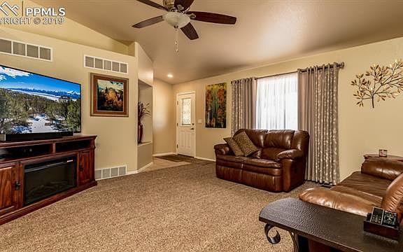 A must see Pueblo West main level living near the reservoir. Lots of great features: Vaulted Ceilings with LEDcanned recessed lighting throughout (including the shop), large kitchen with lots of cabinetry, formal living room with an additionalfamily room with a pellet fireplace(stove) extended beyond the formal dining area. Covered back patio with recessed lighting hasaccess from the family room and the master bedroom. Nice Laundry room/mud room with cabinetry. Built in and plant shelving in theliving room that opens into the formal dining area for entertaining. Nice neutral color throughout gives it a warm look. Very wellmaintained home shows as you walk through the property. Property includes a lot of nice items: Stainless steel appliance, hot tub,gazebo and the large workshop is something to boast about for the man cave or additional storage for vehicles, etc. New paintthroughout inside and out and newer carpet. The Cleery Bldg Workshop is a 30x32 insulated with concrete slab, electricity, overheaddoor with a power opener. front xeriscaping will be completed in the nextfew weeks. This home is a must see! Schedule your appointment today!!!